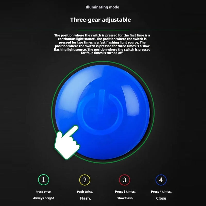 Instructions for use : Pressing once is a continuous light source, and pressing twice is a flashing light source.